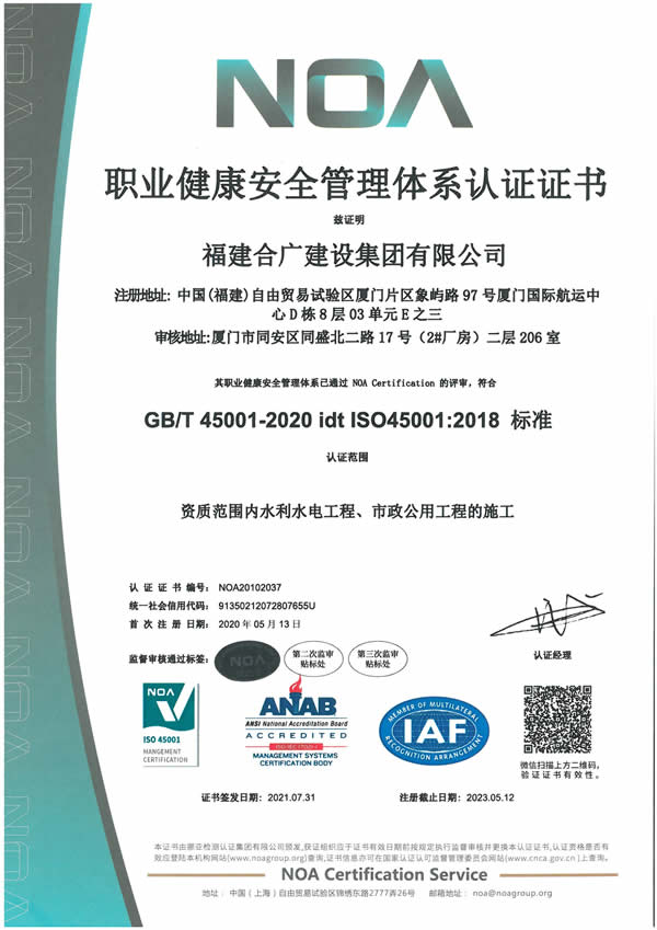 福建合廣建設(shè)集團(tuán)有限公司,注冊資本5188萬元人民幣,公司位于廈門市同安區(qū)鳳山一里151-17號。本公司成立于2013年,公司具備市政公用工程、水利水電工程、房屋建筑工程、公路工程、園林綠化等多專業(yè)施工資質(zhì)。企業(yè)從業(yè)人員100多人,各類專業(yè)技術(shù)人員70多人,其中高級職稱8人,中級職稱40多人,一級建造師6人,二級建造師15多人。